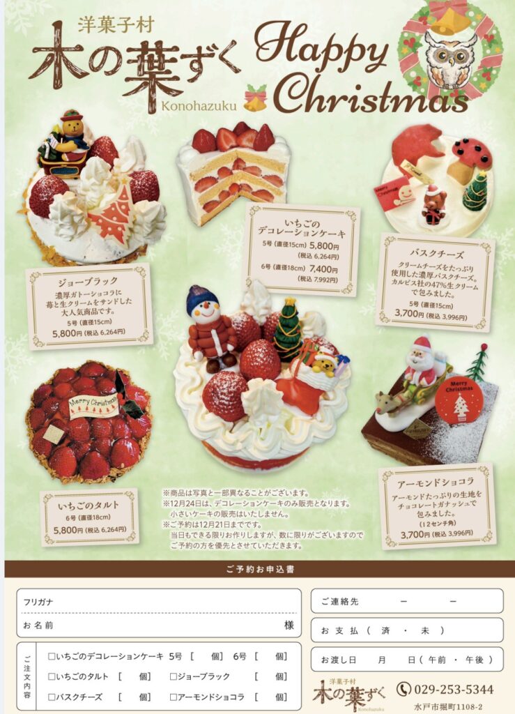 クリスマスケーキ🎄の予約始まりました!
