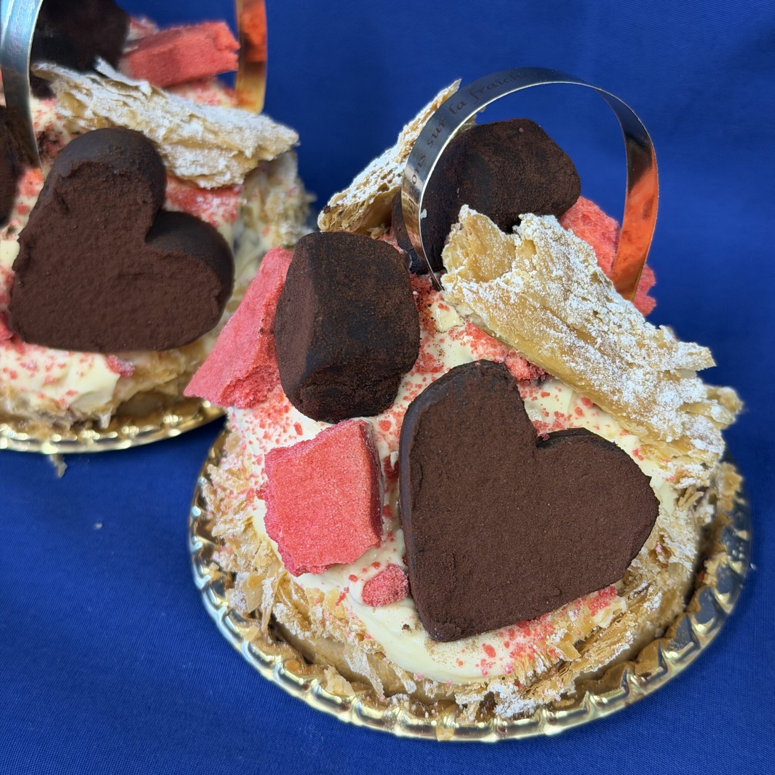 コアントローを使った生チョコをディプロマットで包みました。サワーチェリーで爽やかに仕上げてます。